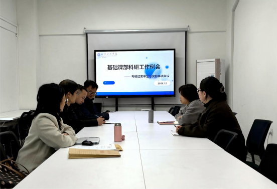 为进一步规范科研管理,强化科研考核导向作用,12月3日,基础课部(以下简称“课部”)召开专题工作例会,聚焦科研考核相关工作进行专项研讨。课部学术委员会成员、教学秘书及行政秘书参加会议,会议由课部副主任俞霜主持。