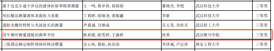 近日,第十一届全国大学生物理实验竞赛(创新)决赛在中南大学落下帷幕,武汉晴川学院选派的2支参赛队伍,与来自清华大学、北京大学等全国722所高校的3260支代表队同台竞技,最终获得全国三等奖1项、全国优秀奖1项。
