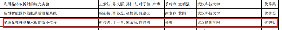 为提高学生参赛作品质量,基础课部物理教研室联合学校教务处负责组织实施了校内选拔赛,并且带领晴川代表队参加了湖北省赛。此次竞赛取得的优异成绩,既是参赛队员知识能力的展现,也是基础课部在推动学校人才培养模式“一主体三融合”的实践成果体现,更是学校一直以来高度重视学生全面发展的成果体现。通过此次比赛,进一步激发了同学们对物理实验的学习兴趣与潜能,培养了学生创新实践能力与团队协作精神,展现了晴川学子的精神风貌和青春风采。