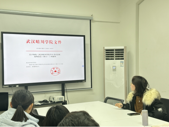 会议紧扣期末考务工作核心要求,重点开展了考务管理制度专题学习。课部教学秘书李燕带领全体教师逐章逐条学习了《武汉晴川学院课程成绩评定与管理办法(修订)》《武汉晴川学院课程试卷评阅工作实施细则(修订)》《武汉晴川学院考试违规处理办法(修订)》《基础课部监考人员守则》四项关键制度文件。