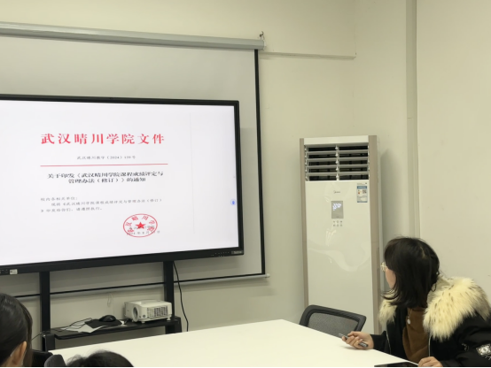 在制度解读环节,针对《武汉晴川学院课程成绩评定与管理办法(修订)》,重点明确了成绩构成比例、平时成绩记录要求、成绩录入规范及成绩复核流程等核心内容,强调成绩评定需坚持客观公正、过程性评价与终结性评价相结合的原则,确保真实反映学生学习成效。围绕《武汉晴川学院课程试卷评阅工作实施细则(修订)》,详细解读了试卷评阅的标准制定、流程规范、评分细则统一、评阅符号使用及试卷归档要求,着重强调评阅工作的严谨性与公正性,要求教师严格执行“双人复核”制度,杜绝错评、漏评现象。结合《武汉晴川学院考试违规处理办法(修订)》,详细梳理了考试违纪、作弊的判定标准及处置流程,提醒教师需提前向学生做好考风考纪教育,筑牢诚信考试防线。针对《基础课部监考人员守则》,明确了监考教师的岗位职责、考前准备、考场纪律维护、违规行为处置等关键环节,要求全体监考教师提高责任意识,严格遵守监考纪律,提前熟悉考场环境与监考流程,确保考场秩序井然。