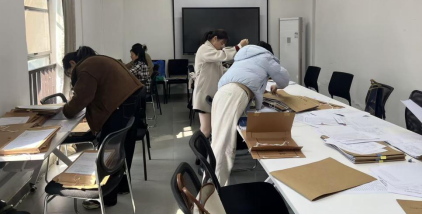 教研室教师们依照自己上学期教授的课程进行分组,对上学期的期末试卷进行整理装订并再度检查试卷。